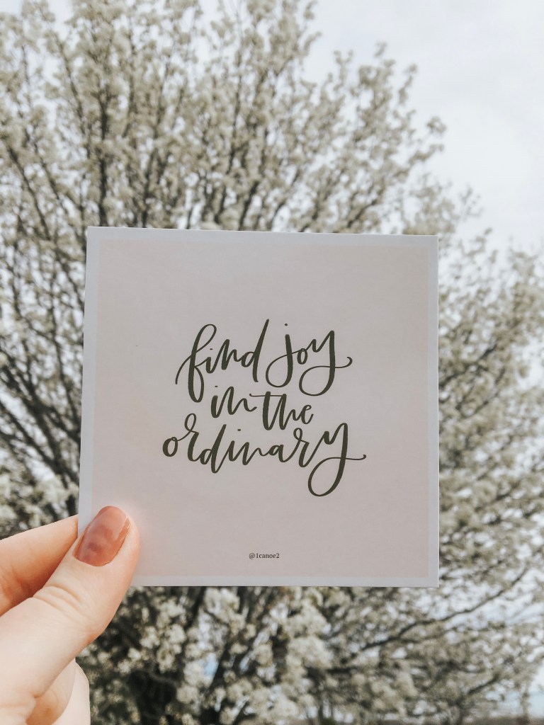 A couple of weeks ago, I received a fun package of stationary which featured a card declaring “Find Joy in the Ordinary”. At first, I didn’t think much of the popular saying. It wasn’t until when my eyes caught the card after our time in isolation that I took it a step further. Find joy in the the uncertainty, the anxiety, and the grief. In the midst of trials and pain, find space for every emotion and let it be.